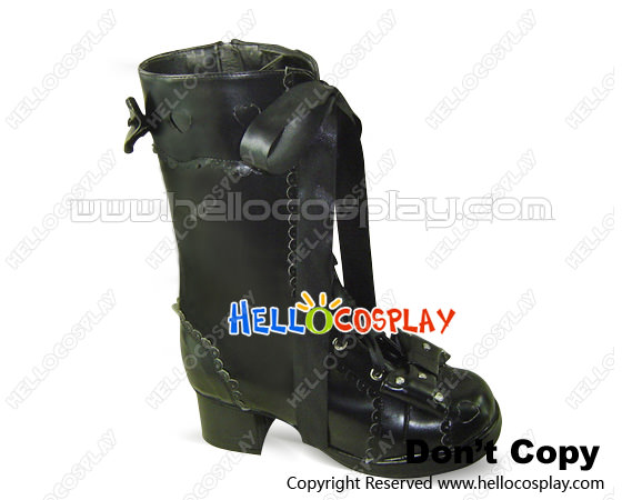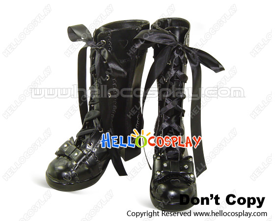 4.5 Heel Black Bows Satin Lace Up Chunky Princess Lolita Boots