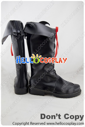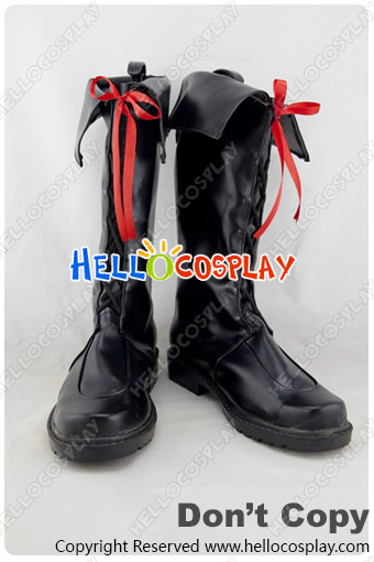 AKB0048 Cosplay Shoes Red Ribbon Black Long Boots