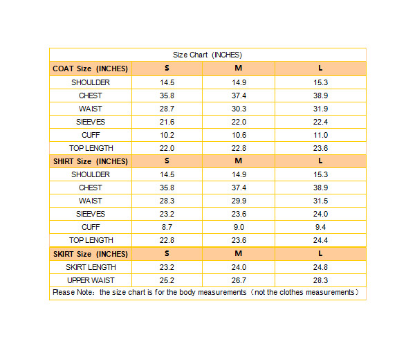 Include: Coat + Shirt + Skirt + Hat + Headwear + Tie + Pectoral