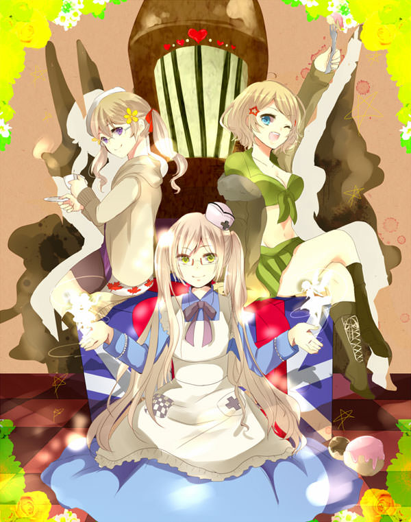Nyotalia refers to the genderbent versions of the canon Hetalia characters. Nyotalia is a fandom-made term, started by the Japanese fandom, from the words nyotaika (which refers to male-to-female genderbends) and Italia (or, rather, Hetalia). Fanmade versions of other characters can often be seen in the tag along with the “canon” ones. In some instances, they are depicted as the characters actually genderbent, though the intention is for them to be completely different incarnations.