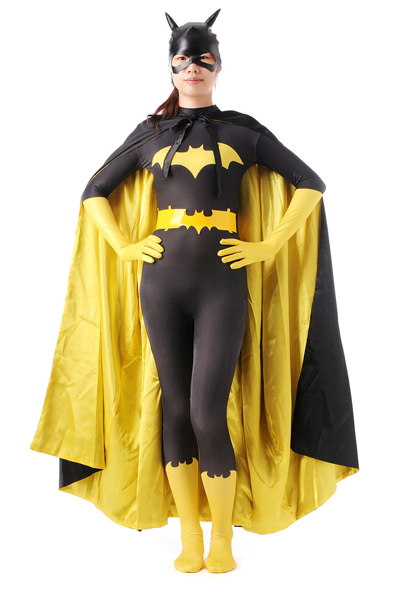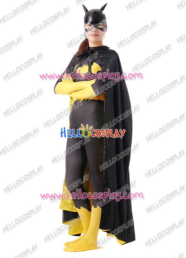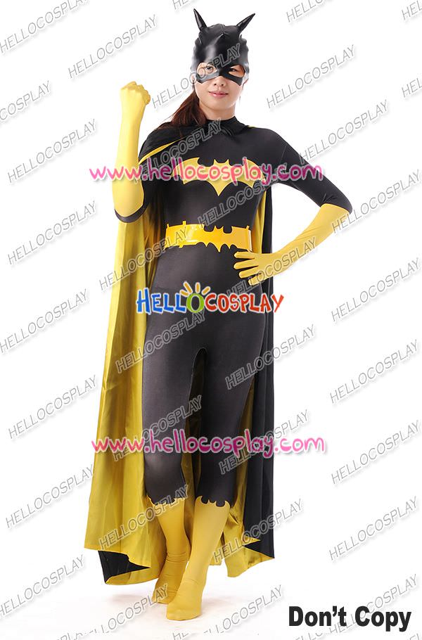 Batman The Dark Knight Batgirl Cosplay Costume Black Outfit Yellow Jumpsuit With Cape