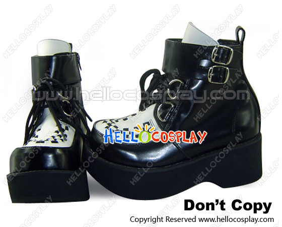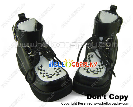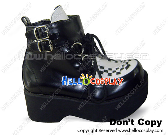 Black And White Buckles Chunky Punk Lolita Ankle Boots