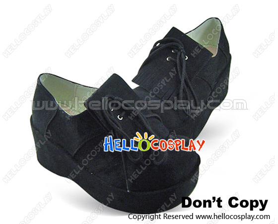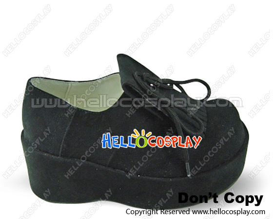 Black Bow Lace Platform Black Suede Sweet Lolita Shoes