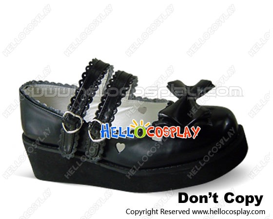 Black Bow Ruffle Double Straps Platform Princess Lolita Shoes