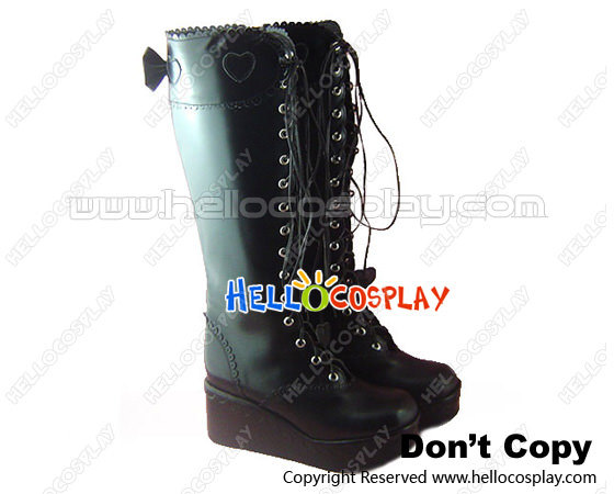 Black Bows Shoelace Ruffle Platform Princess Lolita Boots