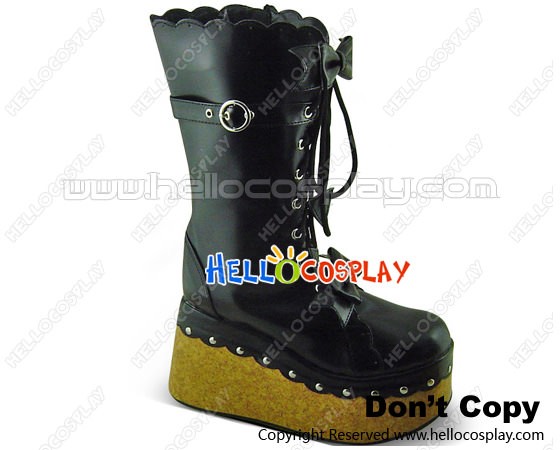Black Bows Wooden Soles Platform Punk Lolita Boots