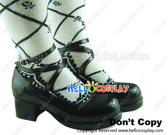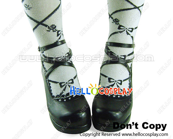 Black Crisscross Ankle Strap Chunky Princess Lolita Shoes