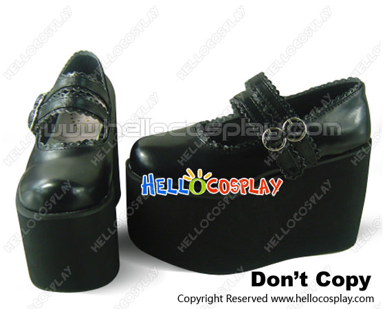 Black Double Ruffle Straps Platform Princess Lolita Shoes