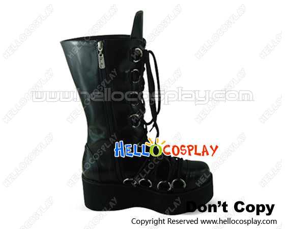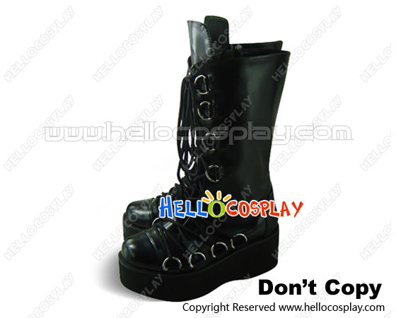 Black Instep Laces Buckles Platform Punk Lolita Boots