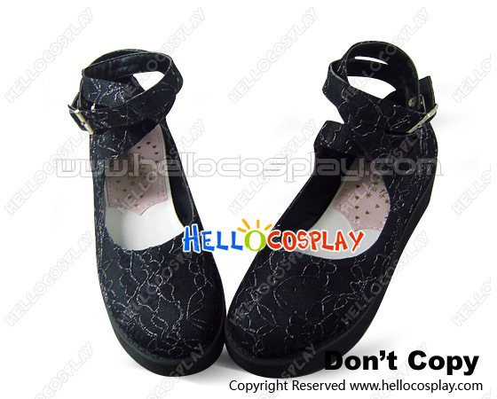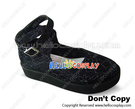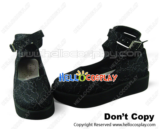 Black Lace Ankle Strap Platform Punk Lolita Shoes