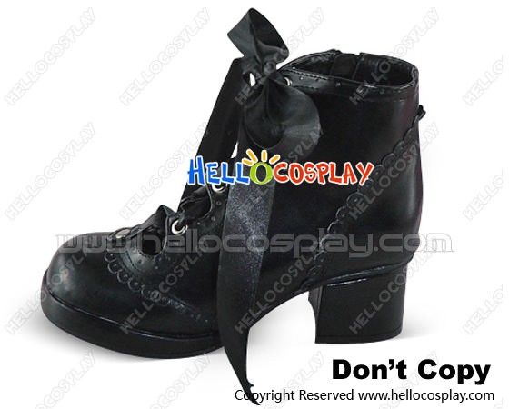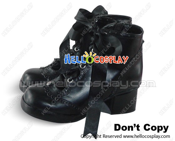 Black Satin Lace Ruffle Chunky Princess Lolita Short Boots