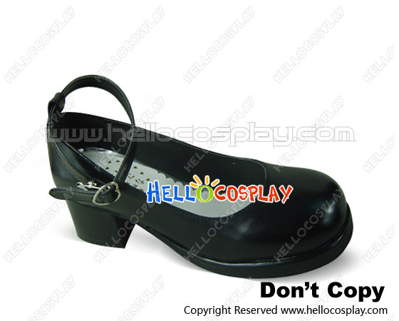 Black Single Strap Plain Chunky Princess Lolita Shoes