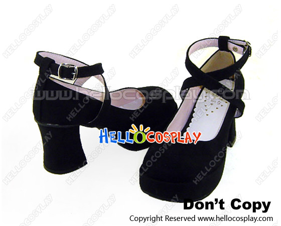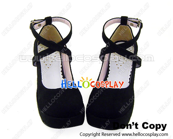 Black Suede Crossing Strap Chunky Punk Lolita Shoes