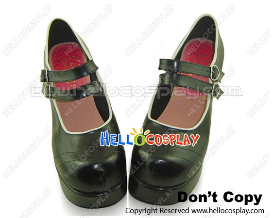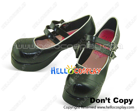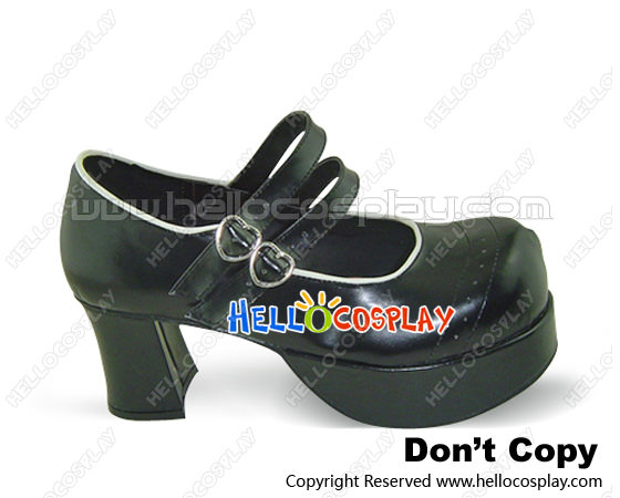 Black White Rim Double Straps Chunky Sweet Lolita Shoes