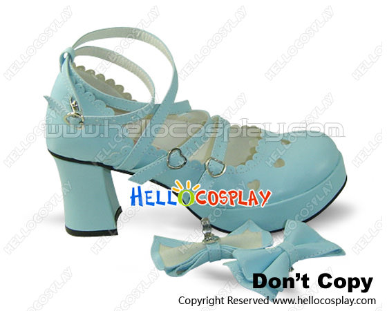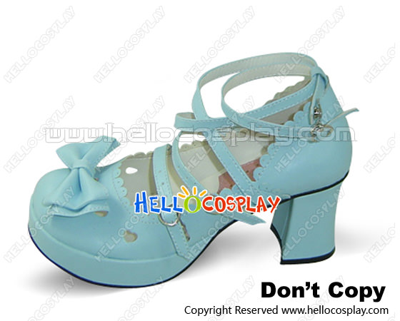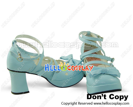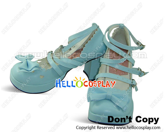 Blue Bow Thin Straps Chunky Sweet Lolita Shoes