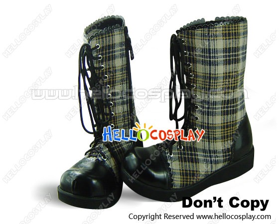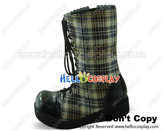 Blue White Gingham Lace And Zipper Platform Punk Lolita Boots