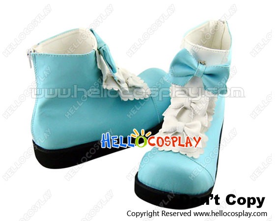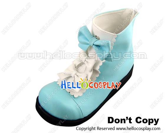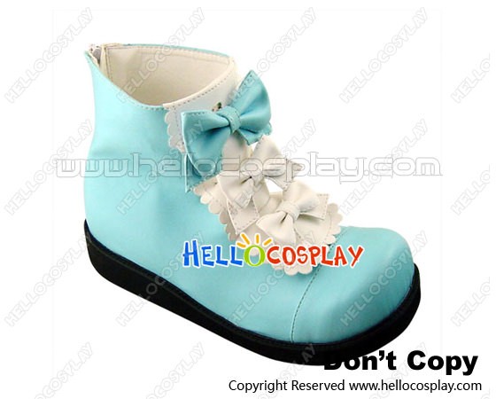 Blue White Three Bows Platform Princess Lolita Short Boots