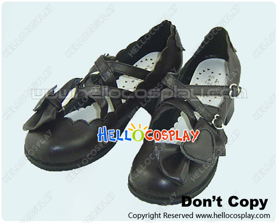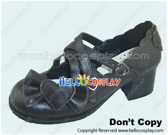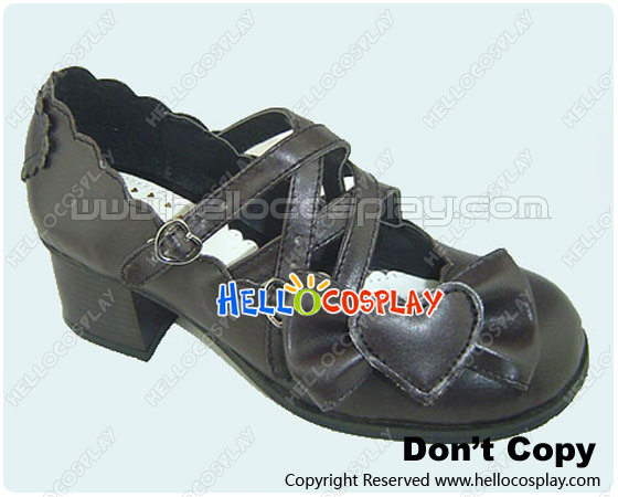 Brown Heart Shaped Bow Chunky Princess Lolita Shoes
