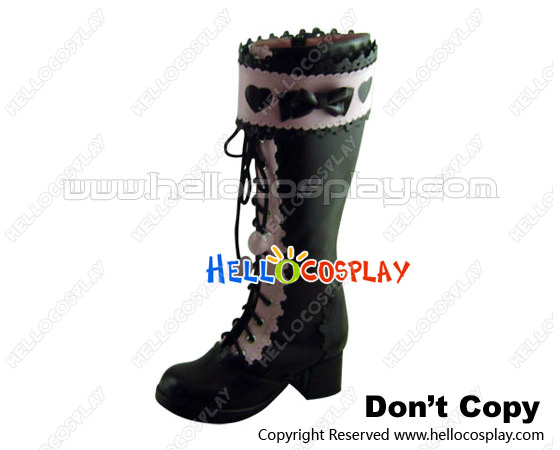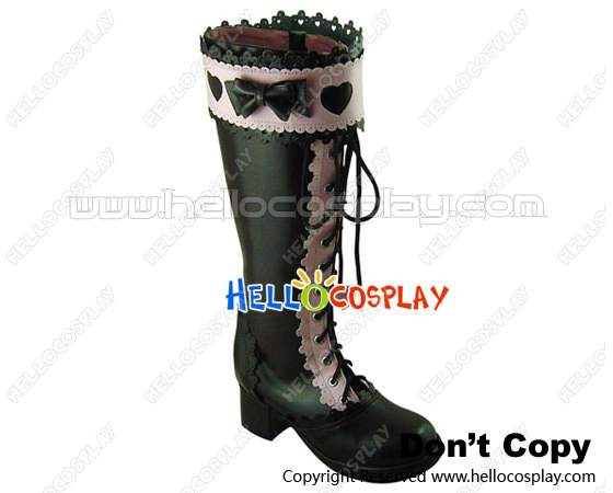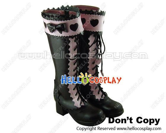 Brown Pink Heart Ruffle Chunky Princess Lolita Long Boots