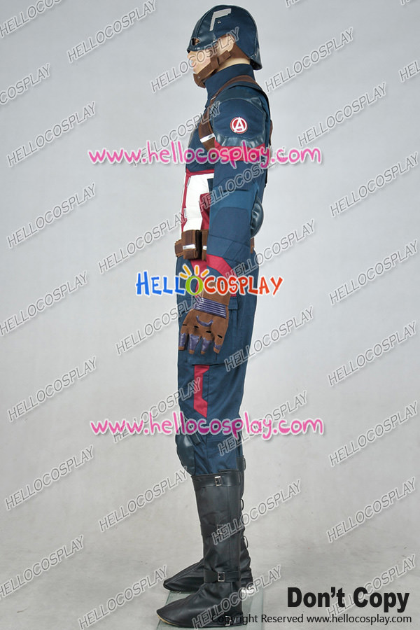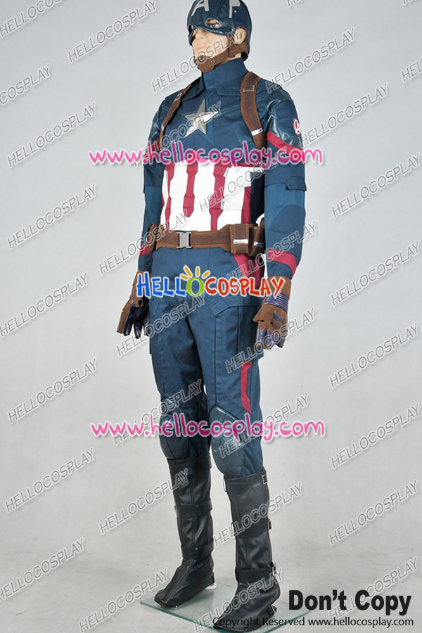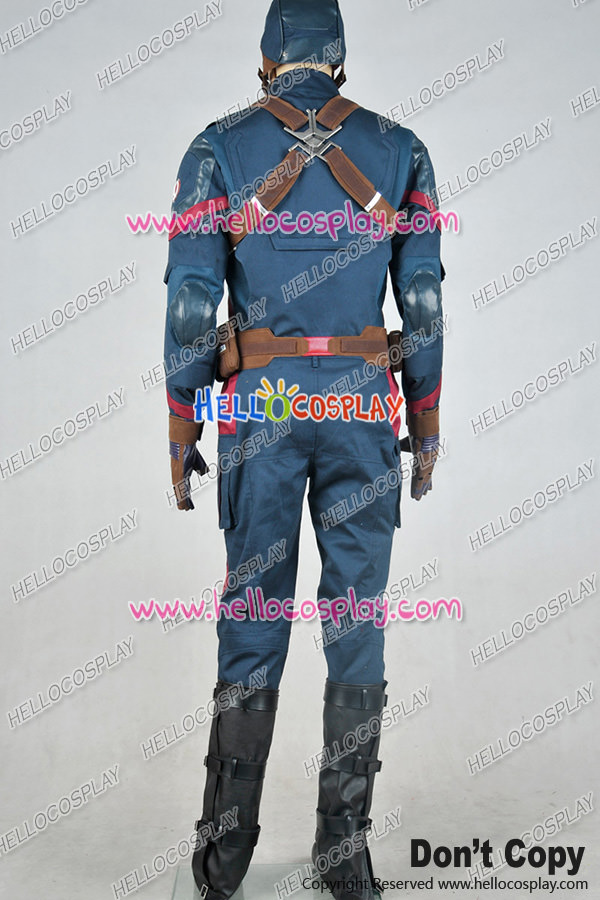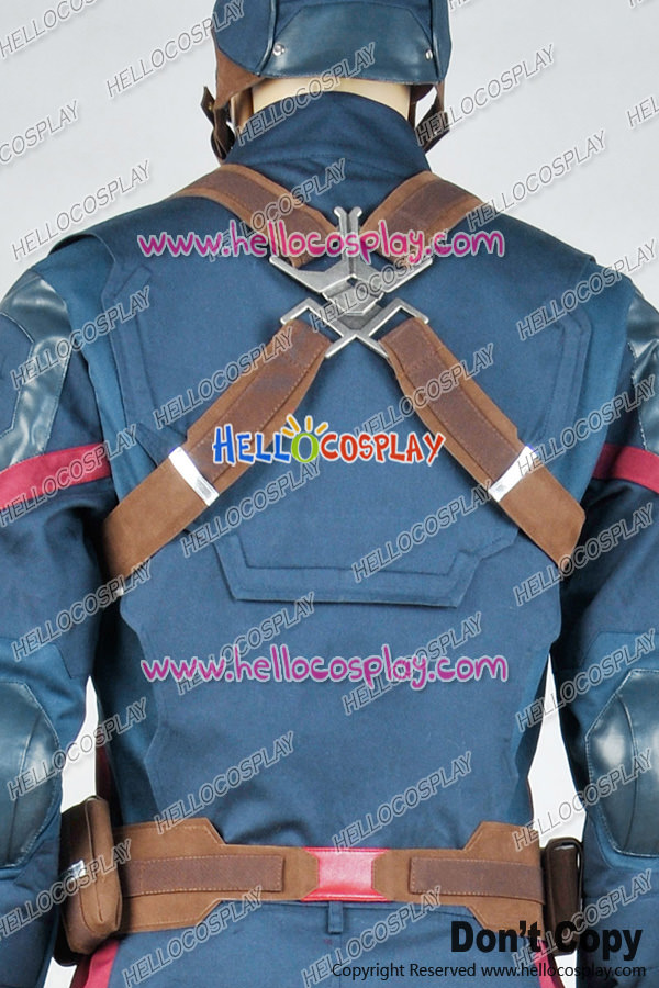 This detailed cosplay of Captain America is sure to bring out the hero in anyone. It’s made from cotton,polyester and artificial leather. The pieces on the abdomen and pants are made from pieces of foam under the material. The upper part of the chest area is lined with foam to give the needed shape and stability. It includes jacket, pants, belt with bags, leg covers, straps, it is cool for you to play as captain america steve rogers.