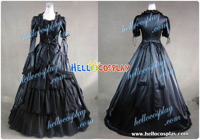 Civil War Gothic Lolita Satin Ball Gown Dress Black