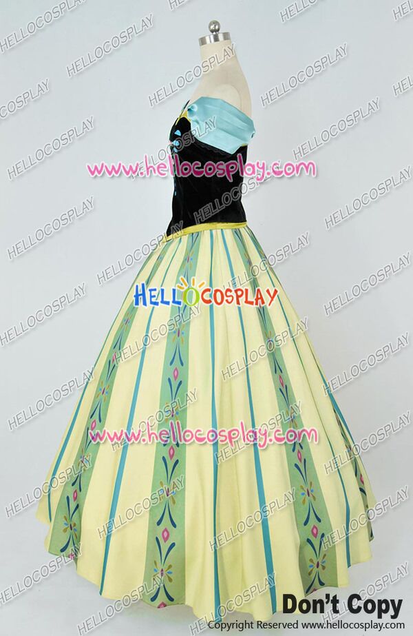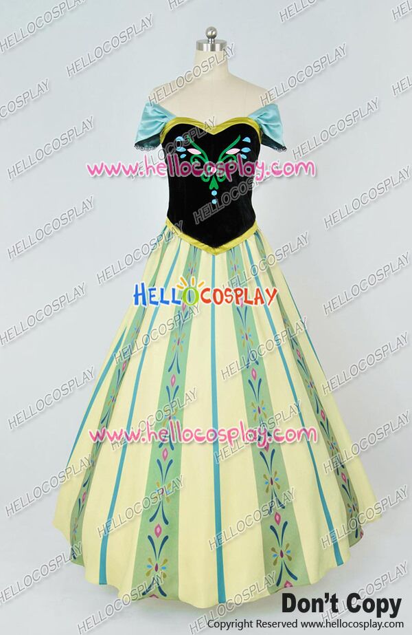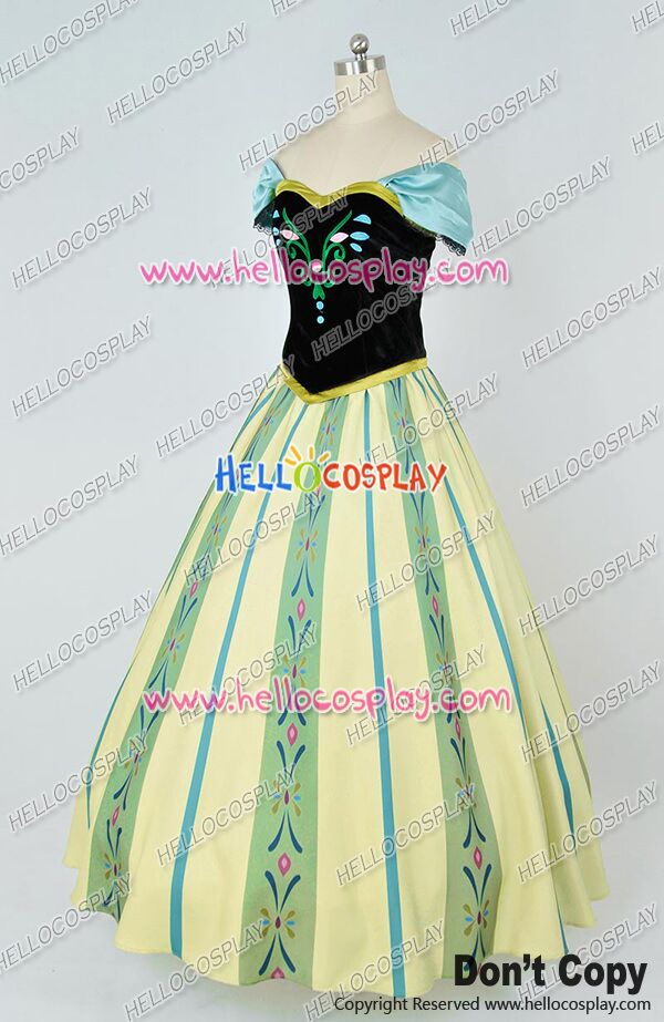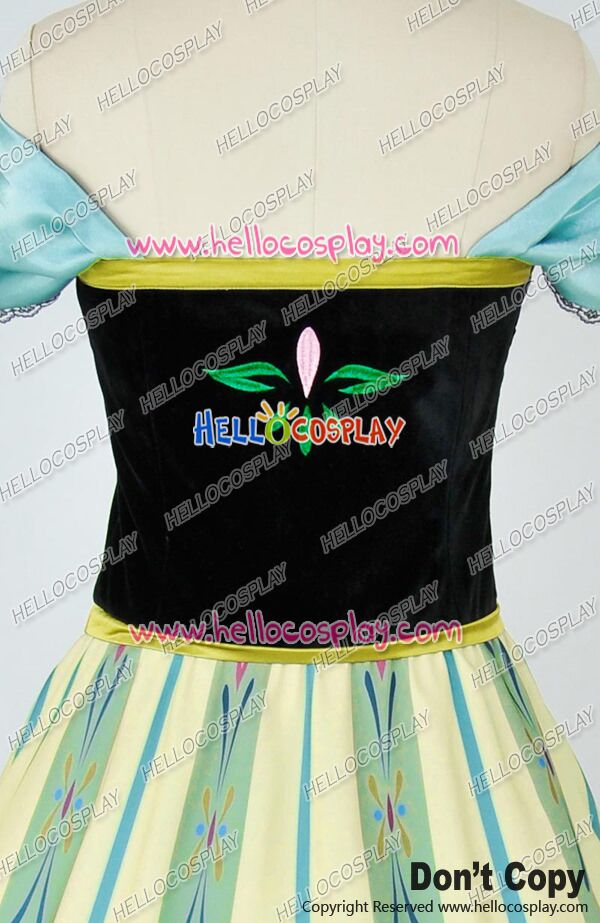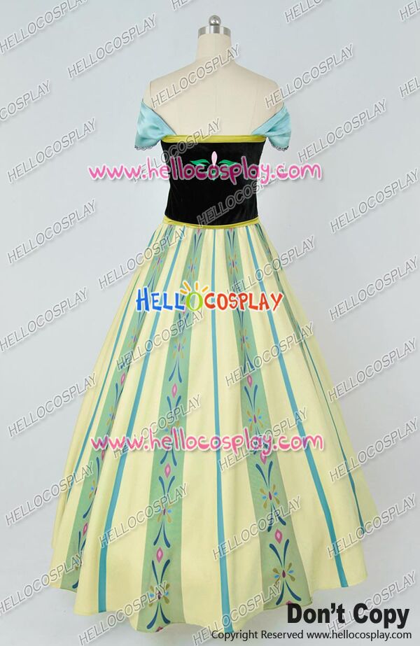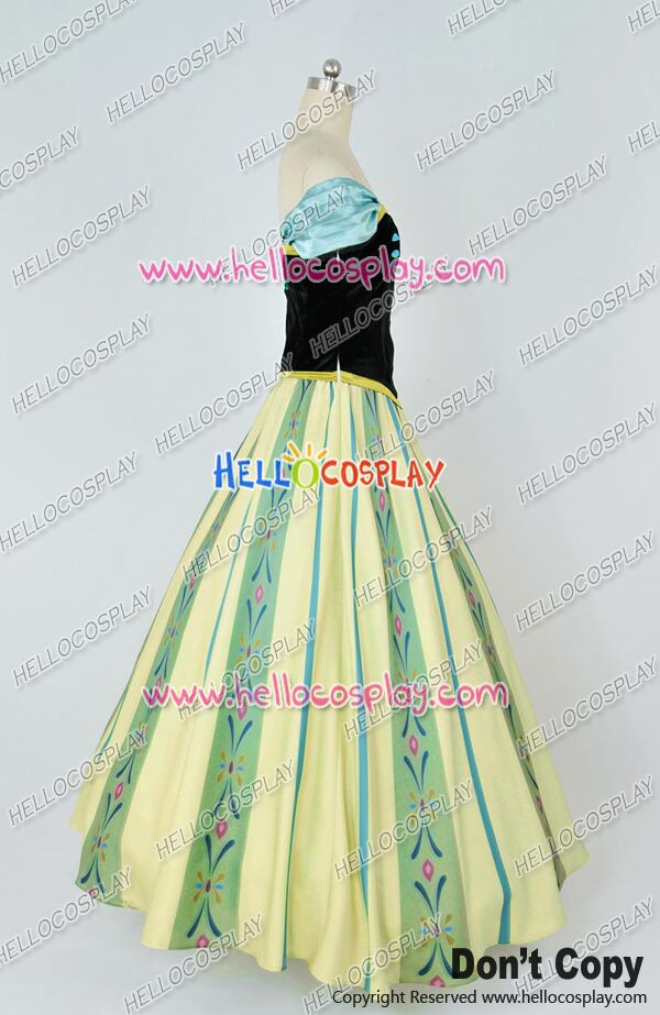 D Cosplay Frozen The Snow Queen Anna Princess Green Formal Dress Costume