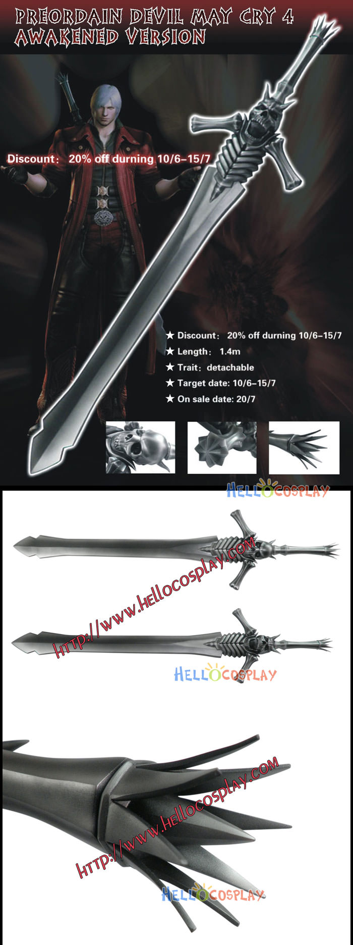Devil May Cry 3: Dante’s Awakening Dante Cosplay Sword Rebellion
