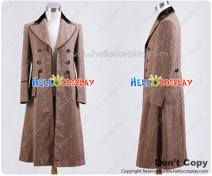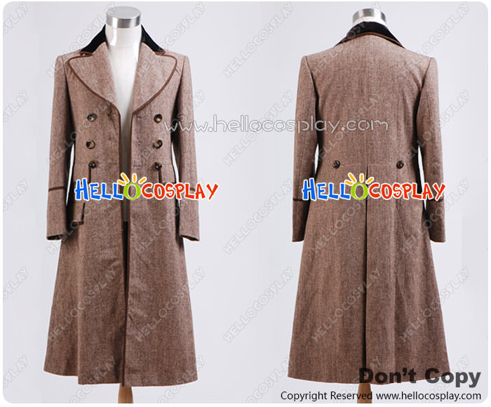 Doctor Cosplay Dr Ecru Brown Long Wool Trench Coat Costume