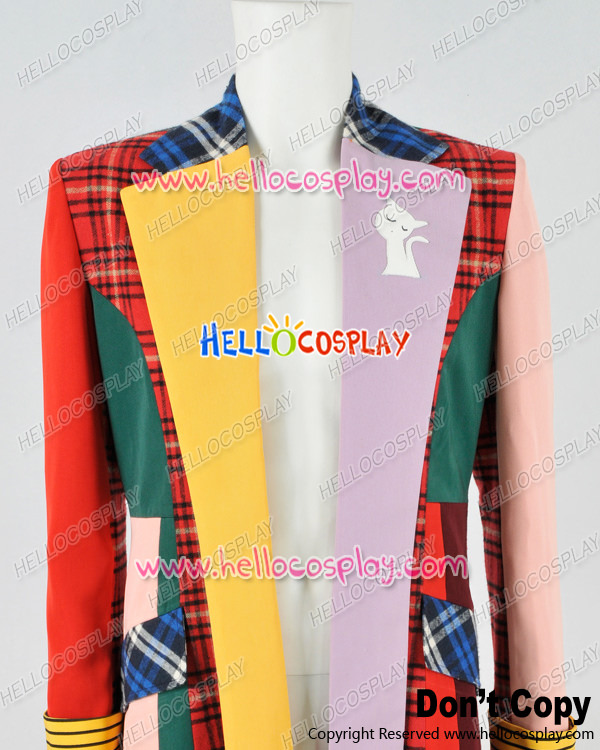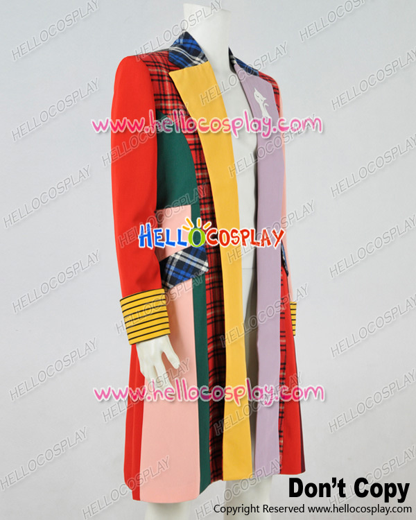 Doctor Cosplay Series 6th Sixth Dr Colorful Lattice Stripe Coat Costume