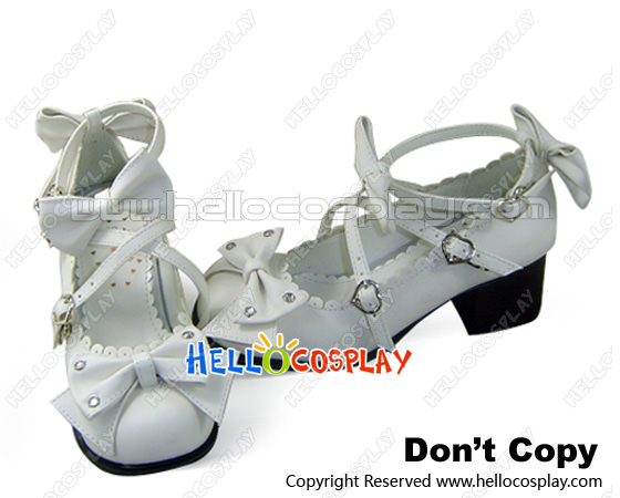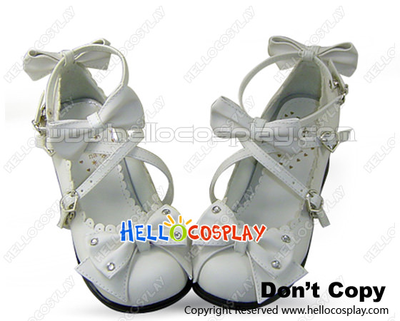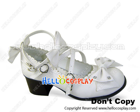 Elegant White Crossing Straps Heart Shaped Buckle Lolita Shoes
