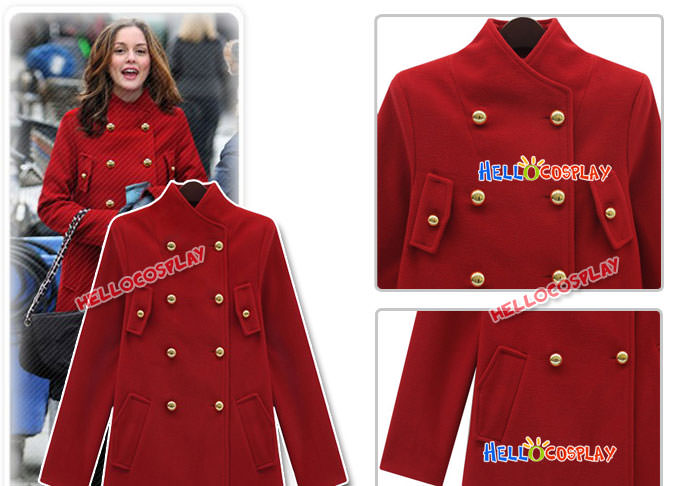 Gossip Girl Blair Waldorf Cosplay Costume Red Military Coat Gold Button