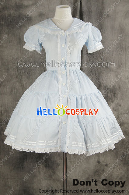Gothic Lolita Cosplay Blue Sailor Dress Costume