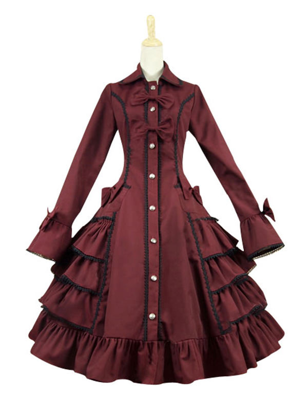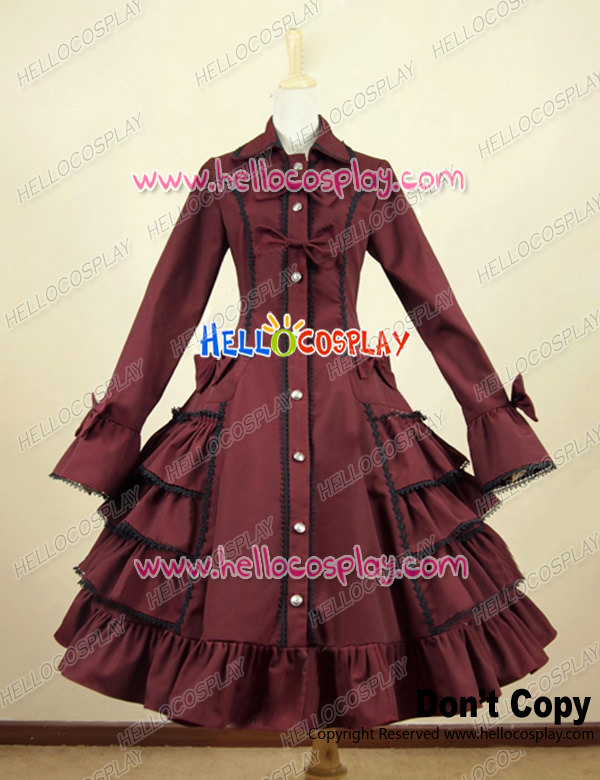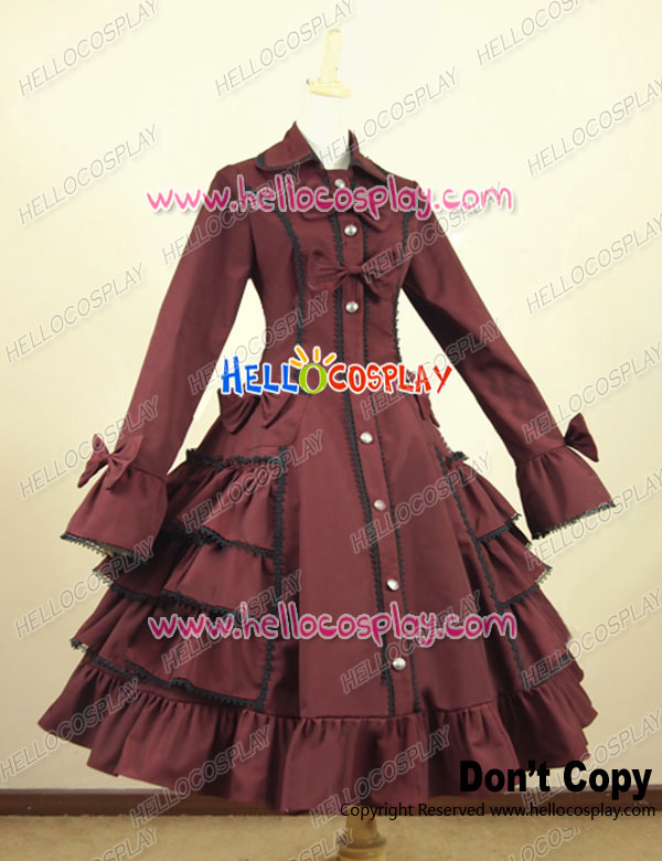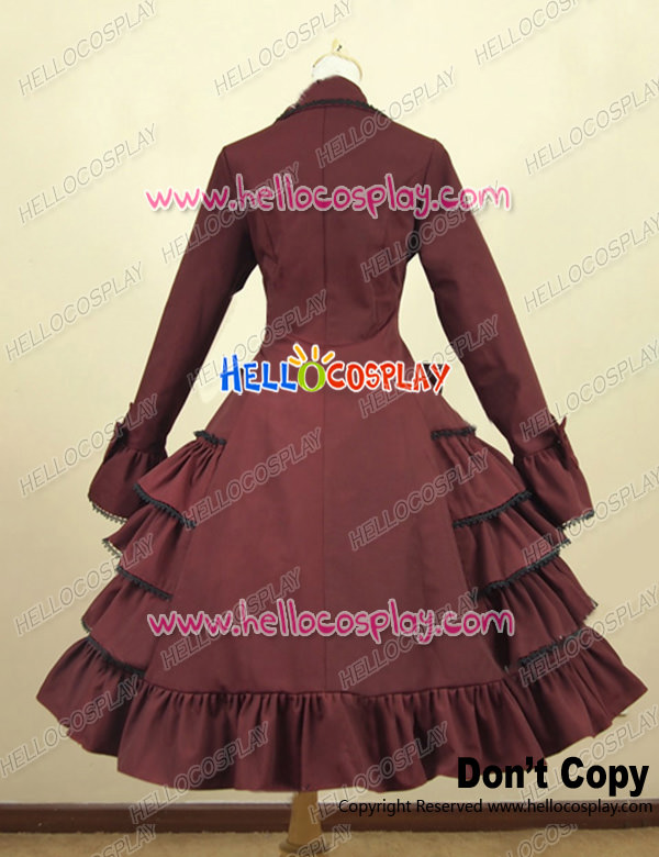 Gothic Lolita Cosplay Victorian Coat Reenactment Steampunk Stage Wine Red Dress Costume