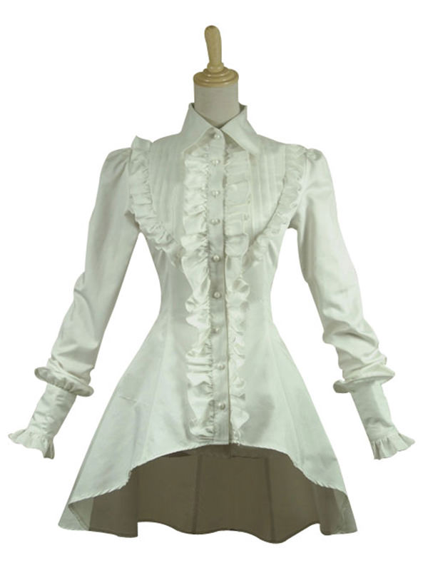 Gothic Lolita Cosplay Victorian Romantic White Blouse Ruffle Steampunk Costume