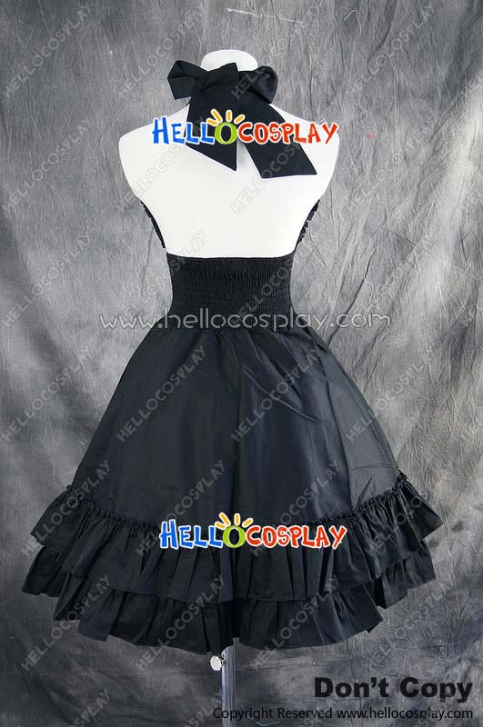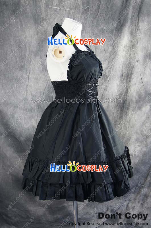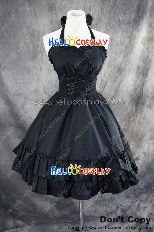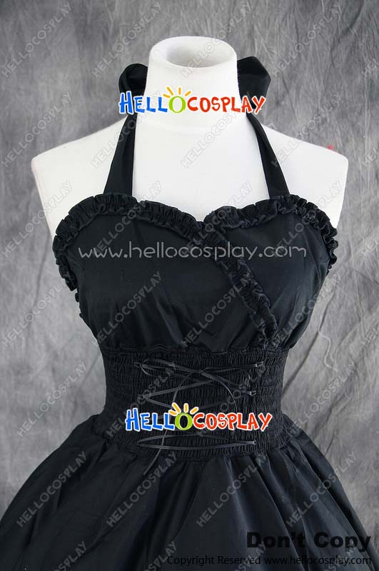 Gothic Lolita Dress Cosplay Costume Halter Neck Dress Cute Elastic Black