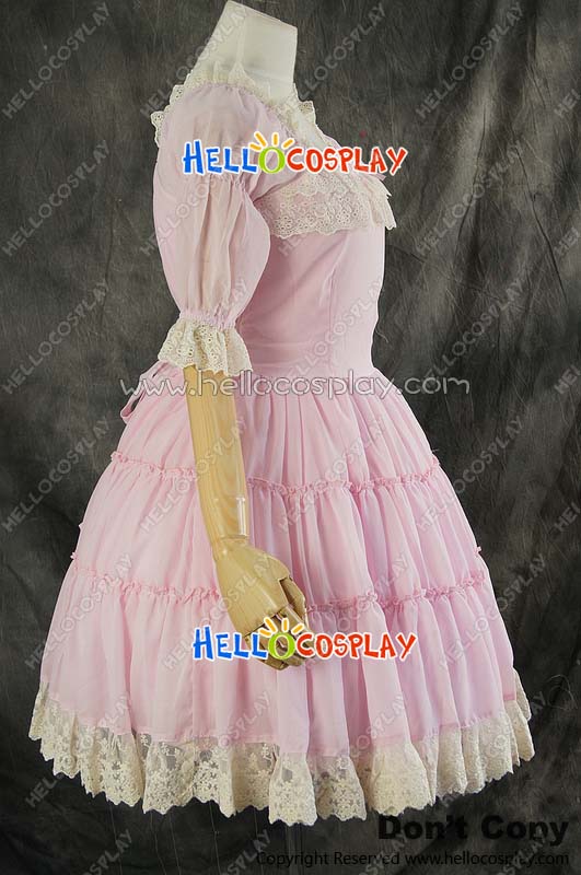 Gothic Lolita Dress Cosplay Costume Lace Princess Pink