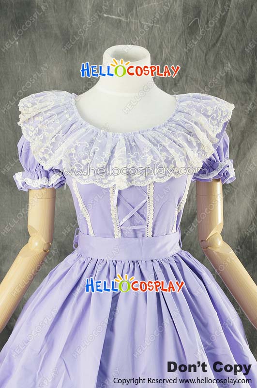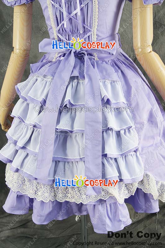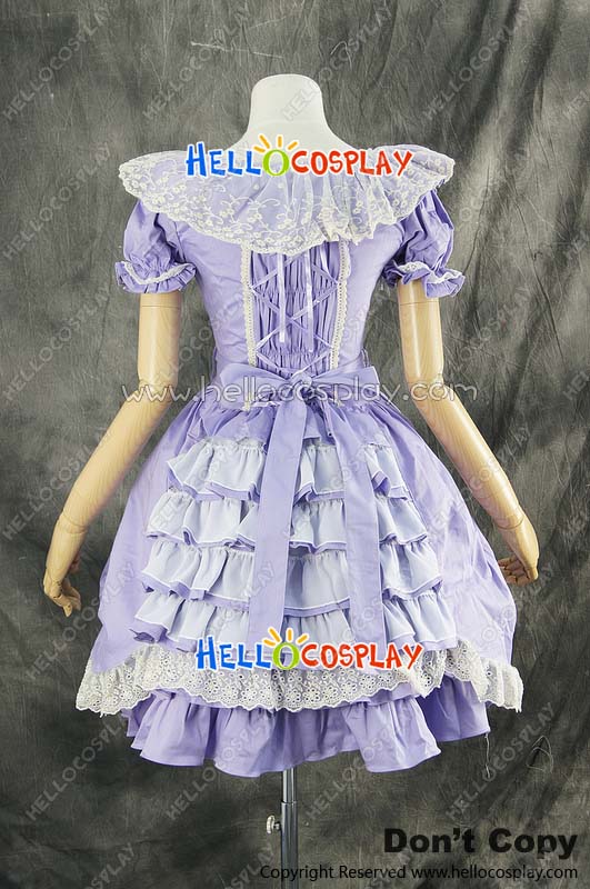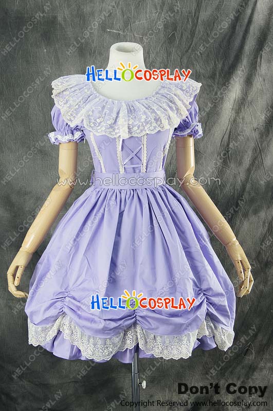 Gothic Lolita Lace Dress Cosplay Costume Short Sleeves Purple