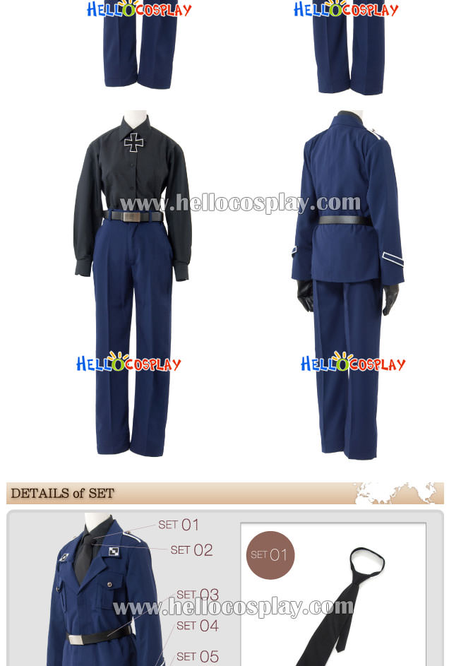 Made of Uniform Cloth + Cotton, high quality and comfortable to wear, tailor-made, fit you best. The costumes are both accurate designed, exquisite in details, made according to the original version, great for Prussia Cosplay.