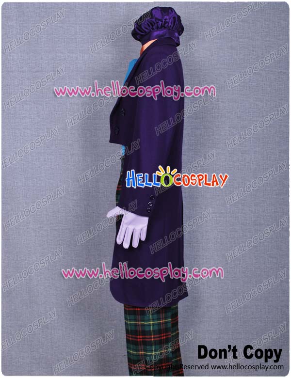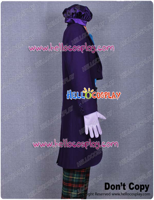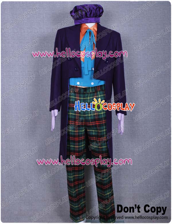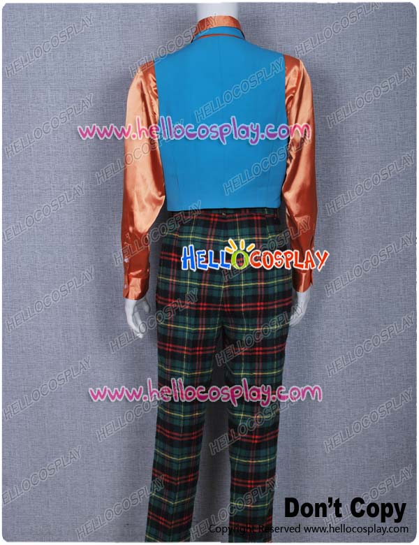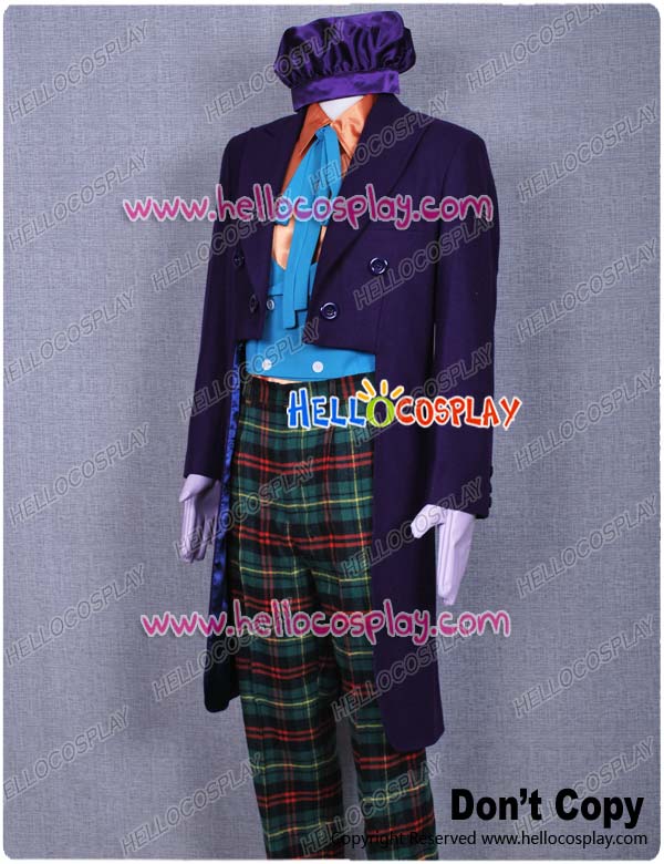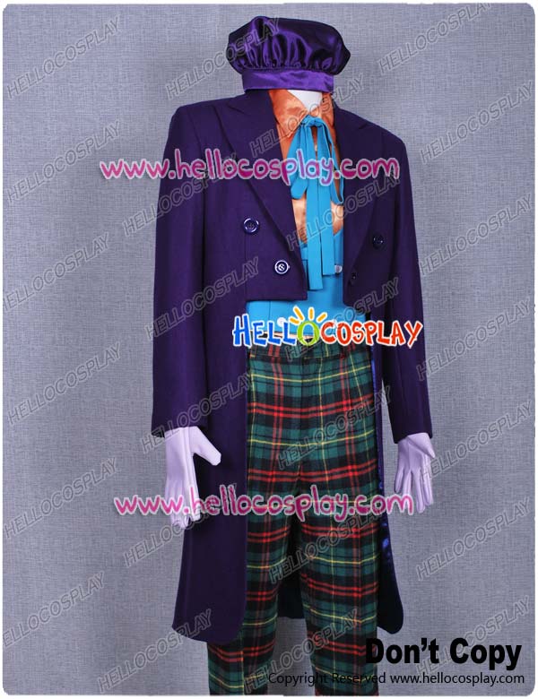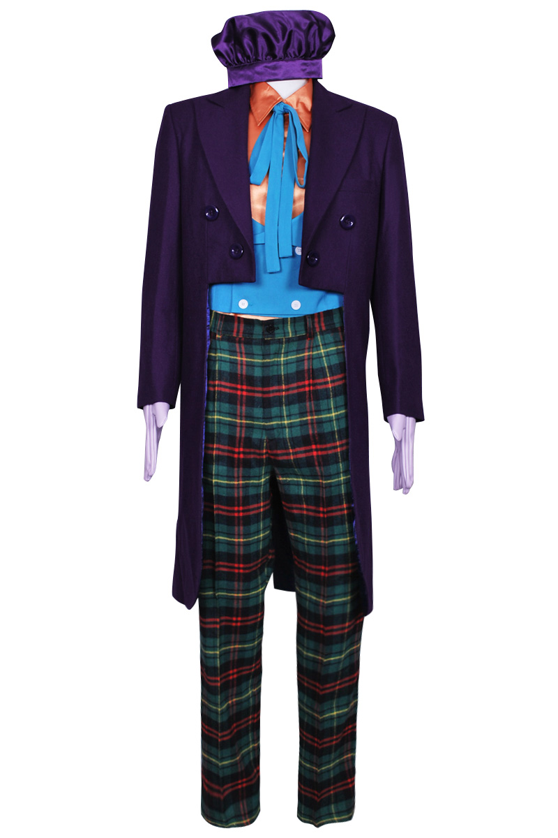 Include: purple wool tuxedo + green vest + orange shirt + hat +pants + gloves + tie