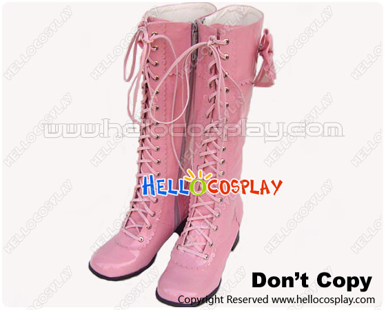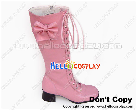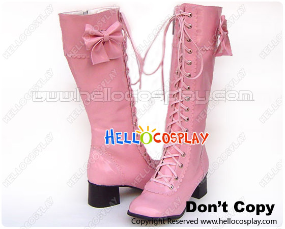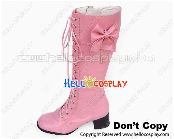 Light Pink Bows Lace Up Ruffle Chunky Princess Lolita Boots
