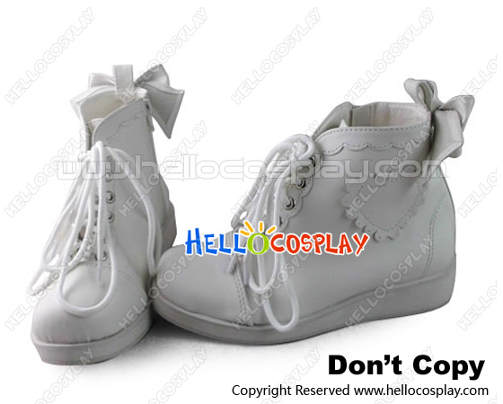 Lolita Shoes White Super Cute Heart Shaped Lace Bow Sweet Short Boots