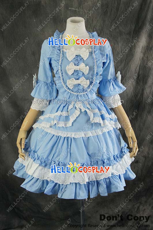 Lolita Sweet Gothic Dress Cosplay Costume Lace Blue