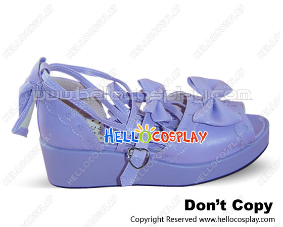Matt Purple Bows Instep Straps Platform Princess Lolita Sandals
