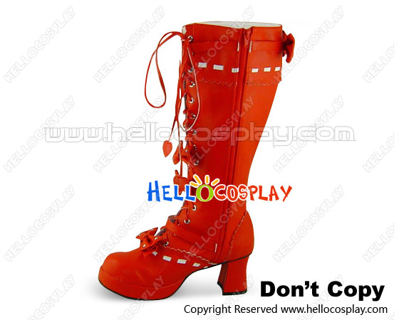 Matt Red Heart Lace Bows Chunky Princess Lolita Boots