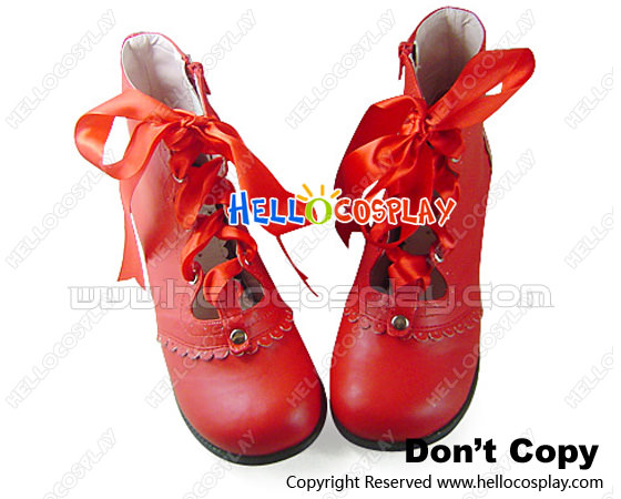 Matt Red Satin Lace Ruffle Chunky Princess Lolita Boots