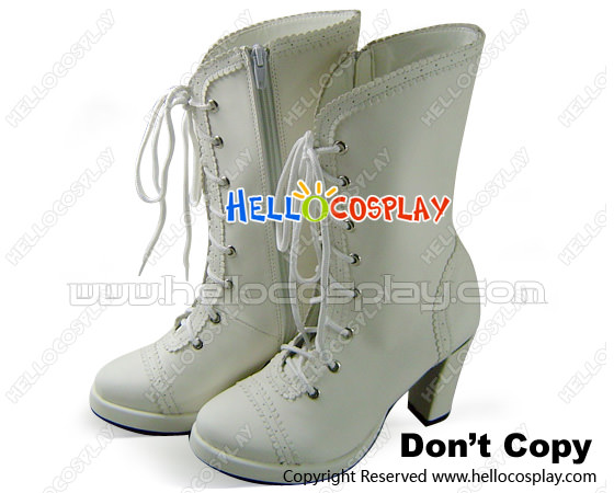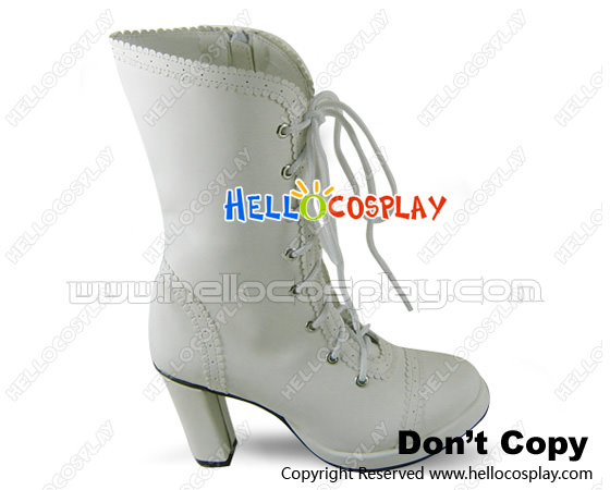 Matt White Ruffle Lace Zipper Chunky Punk Lolita Boots