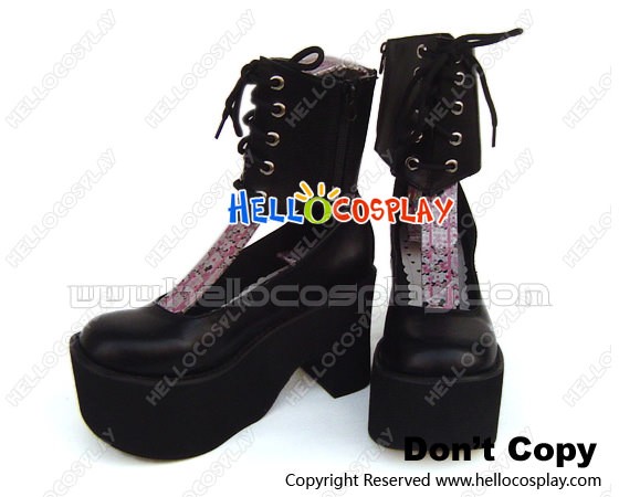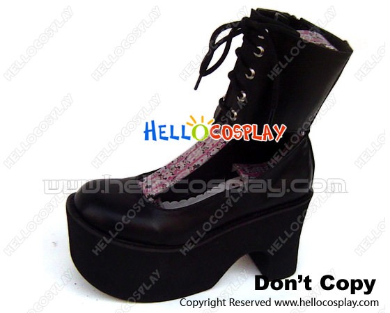 Matte Black Ankle Strap Lacing Chunky Punk Lolita Shoes