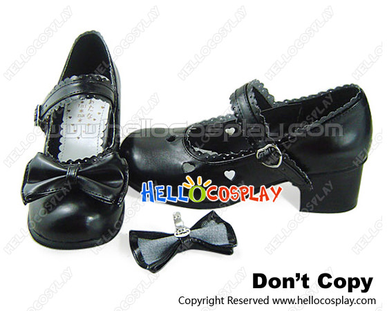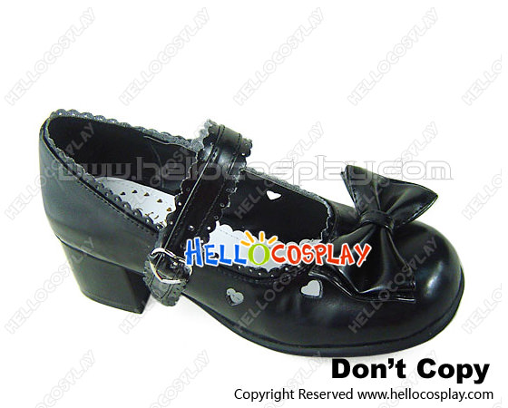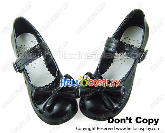 Matte Black Bow Ruffle Single Strap Chunky Princess Lolita Shoes