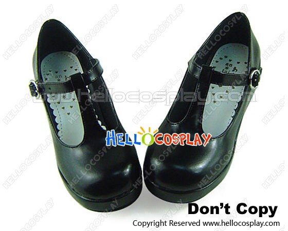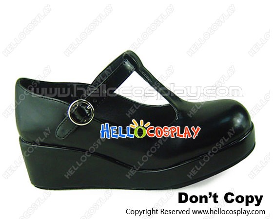 Matte Black T Strap Platform Princess Lolita Shoes
