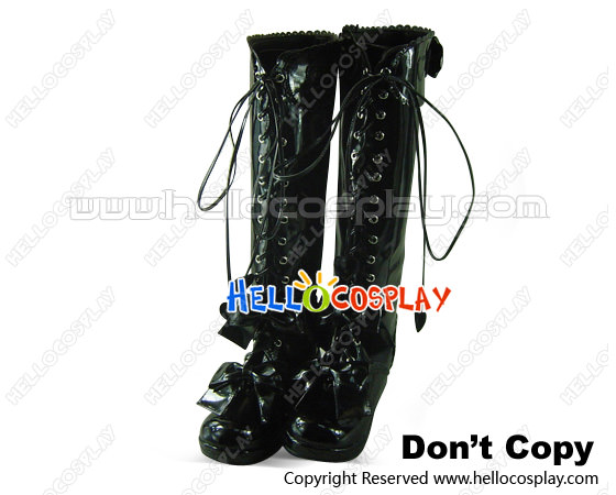 Mirror Black Bows Shoelace Ruffle Platform Princess Lolita Boots
